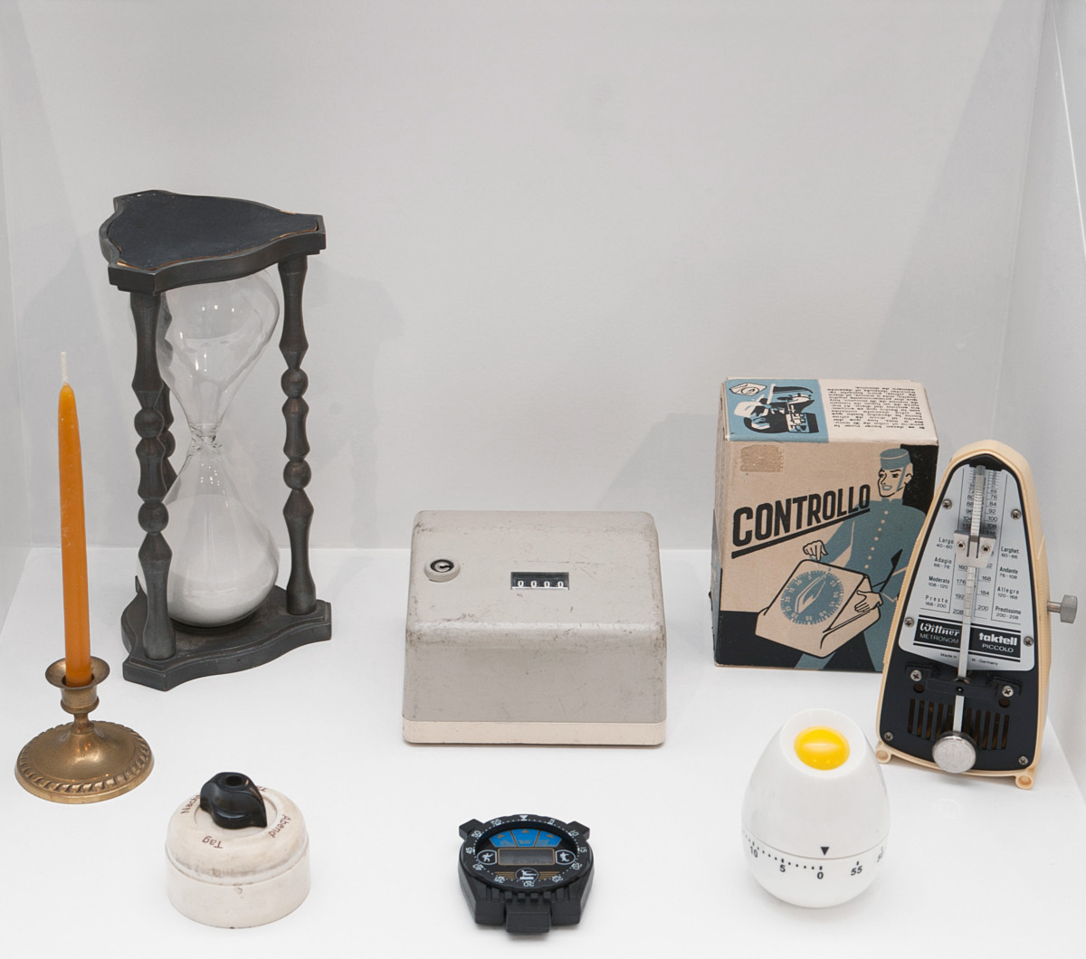 Diesem Phänomen ging die Ausstellung „Zur Zeit“ anhand der Sammlungen des Museum der Dinge nach. Ausgewählt und neu zusammengestellt wurden höchst unterschiedliche Objekte: alltägliche Dinge, Geräte und Instrumente, die Zeit anzeigen, Zeitabschnitte messen, an bestimmte Zeiten erinnern, Zeit zu überwinden versuchen oder das Planen in zeitlichen Dimensionen ermöglichen.