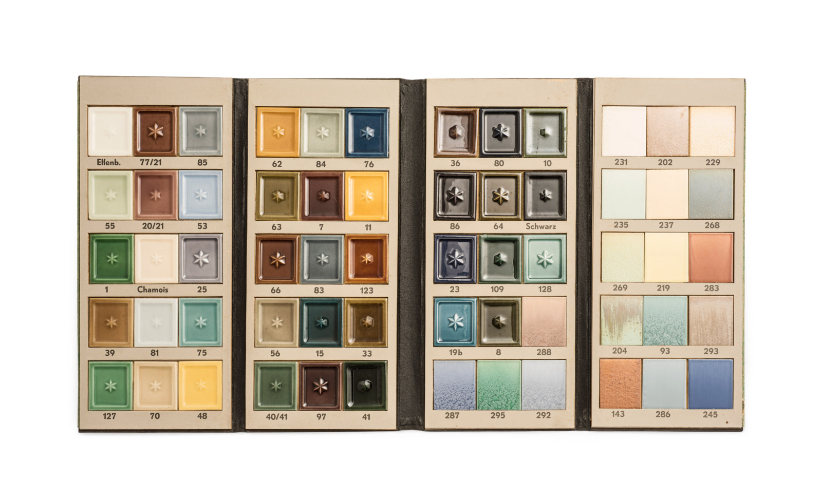 Das Musterbuch für Kachelofenglasuren war in der Sonderausstellung „Object Lessons. Material begreifen in 8 Lektionen“ zu sehen.