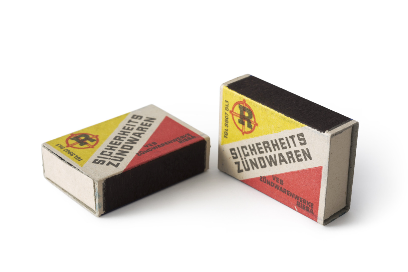 Passend zum Jahresende wurde als unser Ding des Monats Dezember eine Streichholzschachtel aus dem VEB Zündwarenwerke Riesa ausgewählt. Den Inhalt dieses 5,3 x 3,6 x 1,5 cm „großen“ Pappkartons mit farbigem Aufdruck und seitlich angebrachter Reibefläche kann man besonders zum Jahresende gut gebrauchen. Die Abkürzung VEB konnte in der DDR allerdings auch etwas anderes bedeuten als „Volkseigener Betrieb“: angesichts der manchmal nicht ganz einwandfreien Qualität der Streichhölzer stand die Abkürzung im Volksmund auch für „Vorsicht, eins brennt!“.