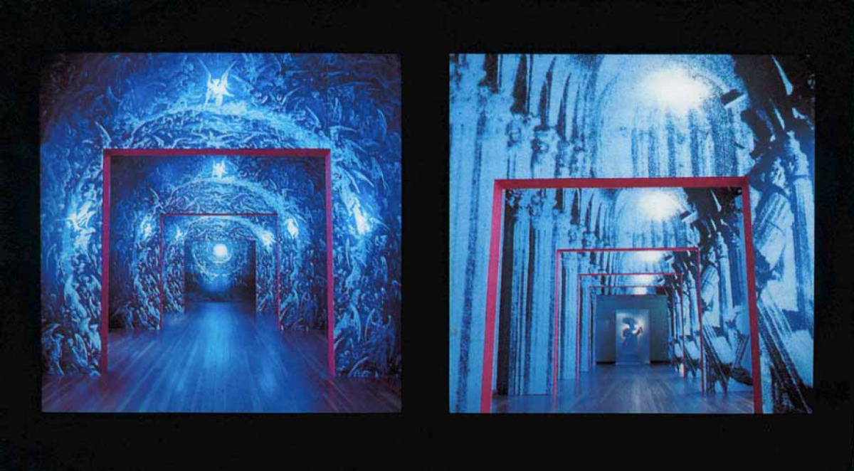 Was Verräumlichung im Zusammenhang mit dem Medium Ausstellung bedeutet – auf dem ersten Blick schient ja der Raum für dieses Medium selbstverständliche Voraussetzung zu sein – das kann an einem Detail des Benjamin-Projekts deutlich werden. Im Werk dieses Autors ist der Engel der Geschichte ebenso wie das bucklicht Männlein ein Bild für das eschatologische Zusammenspiel von Rettung und Katastrophe. Ein fünf Meter breiter und 20 Meter langer Raum wurde Schauplatz dieser Thematik. Die Möglichkeit, Fotos, Gemälde und Graphiken von Rettung und Katastrophe einander zu konfrontieren, wurde ohne Bedenkzeit verworfen. (Und das nicht auf der Basis einer Theorie, etwa der Performanz, sondern aus einem Gefühl heraus, das sich der Deutung noch entzog.) Statt eines bewährten Angebots für ein Augenpaar wurde auf das Wahrnehmen-mit-dem-ganzen-Körper eines Körpers-in-Bewegung gesetzt. Der schmale lange Raum war durch sechs in gleichem Abstand hintereinander gestaffelte senkrecht stehende Flächen unterteilt, die ganzflächig Bildträger waren und zugleich den Passanten den Durchgang ermöglichten. Für jede Richtung wurde ein Motiv ausgewählt, das sich auf sämtlichen Flächen wiederholte. Eine Zeichnung von Gustave Doré zur Göttlichen Komödie öffnete den Raum der Rettung. Der Besucher durchschritt immer neue Heerscharen von Engeln, die in Benjamins Theorie einer Apokatastasis Gott ihren Cantus darbringen und im Nichts verschwinden. Für den Passanten gab es kein ruhendes Gegenüber; die Passage durch die hintereinander liegenden Öffnungen bewirkte eine Bewegung der Engelscharen auf den Passanten zu. Er ist nicht nur physikalisch, sondern wird auch semantisch zu einem Teil (in Bewegung) der Umgebung (in Bewegung).